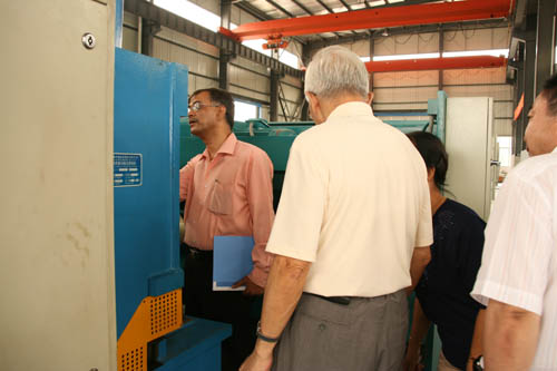 在公司領導的陪同下,PRAKASH先生參觀了公司的成品車間和生產車間,對我公司的生產及研發能力表示出極大的贊賞。我公司智能化的辦公和流水線系統吸引了PRAKASH先生一行。在操作人員的協作下,有著二十多年從業經驗的PRAKASH先生對我公司的QC11Y大型機床進行了細致入微的考察,而我公司的機床也以其過硬的品質和精密的設計贏得了PRAKASH先生的好評。
